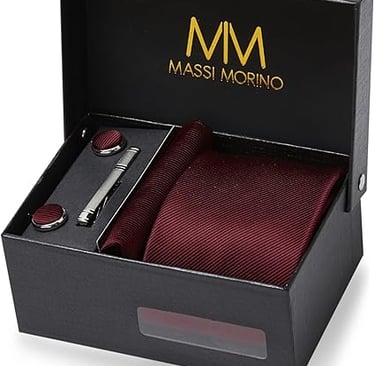 Cravatta e fazzoletto da uomo - con camicia gemelli, parure fermacravatta set I Accessori sposa I Cravatte Elegante Confezione Regalo.