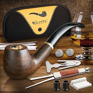 Scotte, pipa per tabacco fatta a mano con radici in legno di ebano, scatola regalo e accessori.
