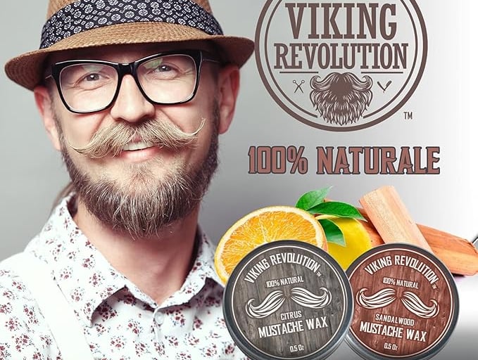 Viking Revolution - Cera Barba e Baffi per Uomo Confezione da 2 - Moustache Wax Tenuta Forte per Domare e Modellare - Agrumi e Legno di Sandalo - 14g cada uno.